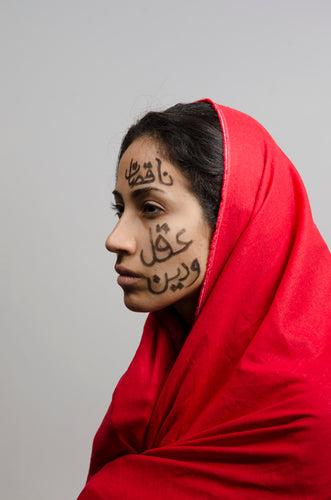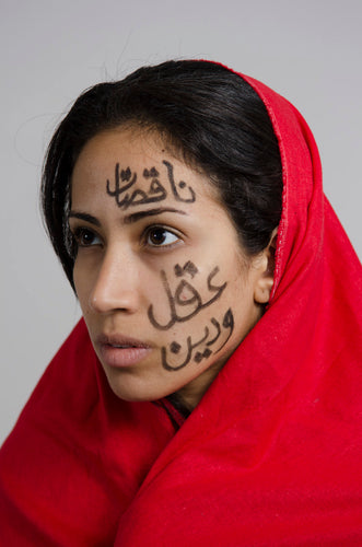 A Muslim Woman in Red Veil Supporting Feminism With An Arabic Phrase Of Quran That Men Misinterpret Wrong